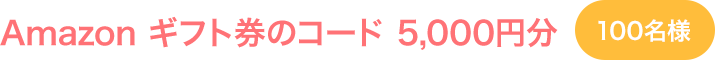 応募いただいた方の中から抽選で100名様にAmazon ギフト券のコード 5,000円分をプレゼントします。※当選者にはメールにてギフト券番号をご送付いたします。
