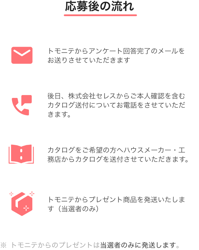 ・ご入力いただきましたメールアドレスや住所の不備、または連絡不能などの理由により賞品がお届けできない場合は、当選の権利を無効とさせていただきます。