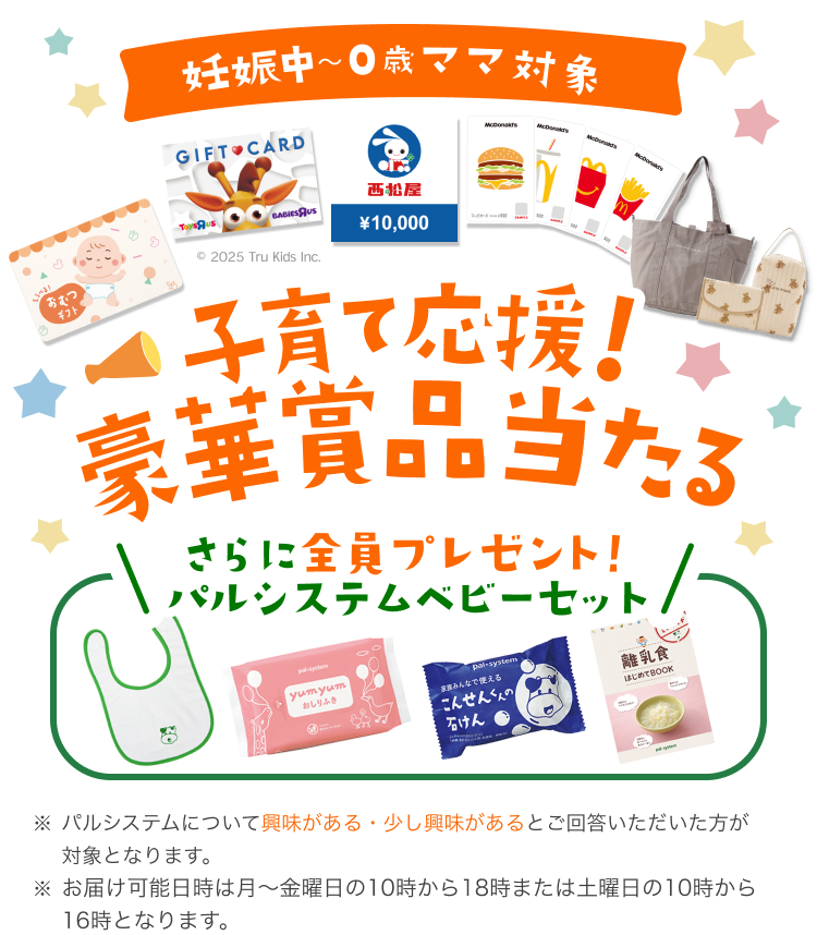 ・過去「パルシステム埼玉協賛子育て応援プレゼントキャンペーン」に応募いただいたことがある場合、ご応募いただけません。