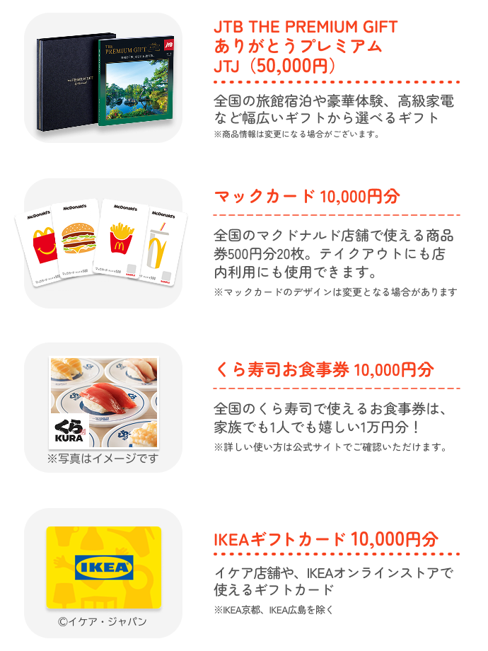 ・無効となった当選が発生した場合、当選人数が記載の数に達しないことがあります。